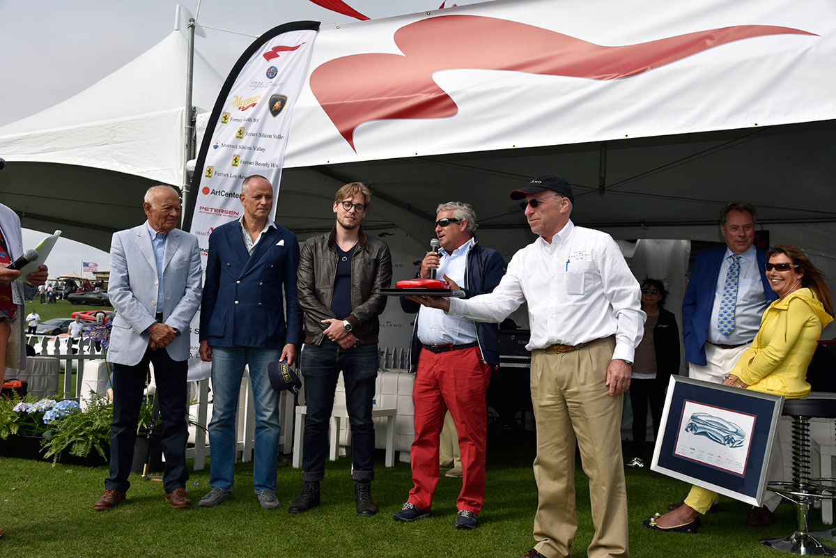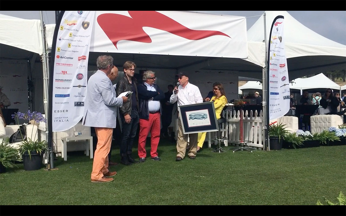 The great exposition of Concorso Italiano, the most important event about Italian cars in the world, was held on Saturday, August 20th 2016 during the Monterey Car Week, in California. Egidio Reali, MR Group CEO and founder, had the honor to participate to the awarding ceremony of the “Best in show” as creator of the award itself: a resin sculpture based on the project of Joaquin Obligado, a young student of the course of Transportation Desing, held in IAAD University of Turin under the supervision of the great Italian designer Giorgetto Giugiaro.