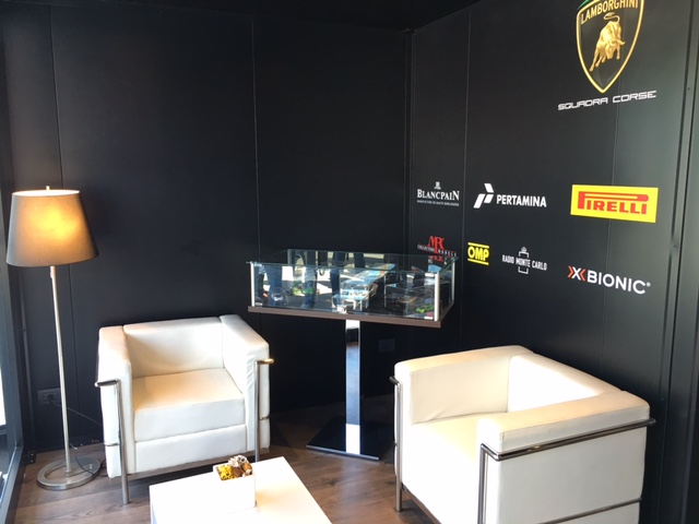 The friendly hospitality has always been a success factor of the Super Trofeo and from this year three car models are displayed in a showcase between two armchairs at the main entrance.