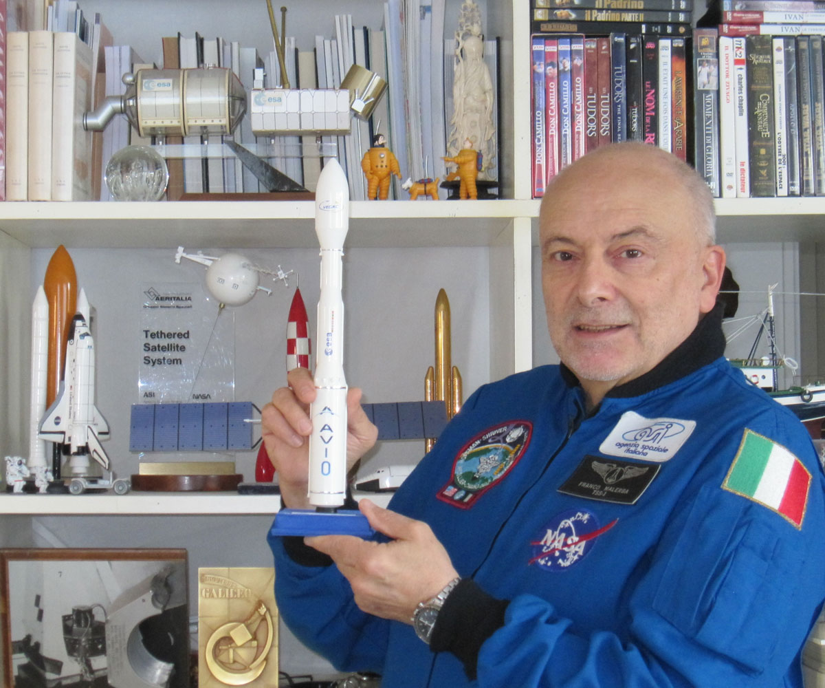 Malerba holds in his hands the model in 1:100 scale made by MR Collection Models of the Vega C, the latest space launcher from AVIO, the Italian company leader in space propulsion.
